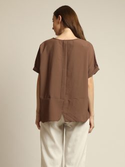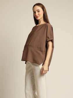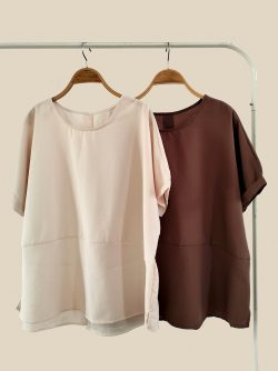 Blus berpotongan batwing dengan aksen belahan di bagian belakang. Berbahan polycotton yang ringan dan tidak mudah kusut.