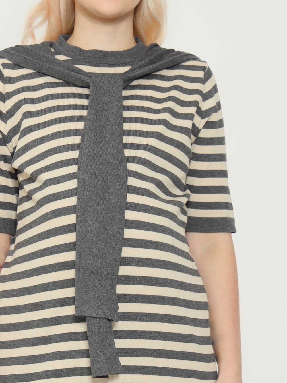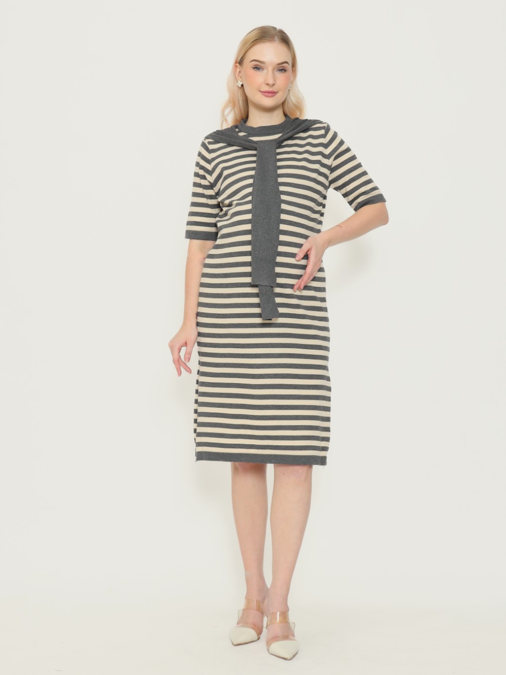 Dress hamil berbahan knit soft dan stretch yang nyaman di kulit. Berpotongan bodycon dengan aksen syal di pundak. Terdapat belahan di bagian bawah. **syal tidak bisa dilepas